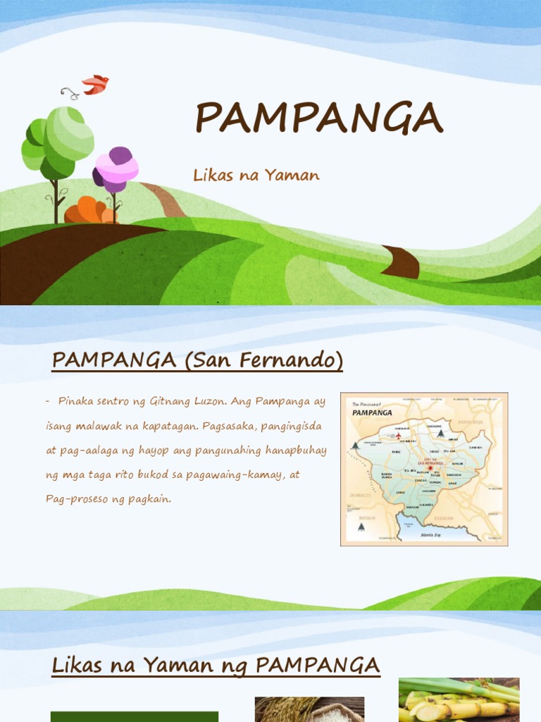 Pangunahing produkto ng pampanga. Dumadami na ang populasyon ng tao sa Pilipinas. Tinatag ng kastila ang Bulacan kaya ito ang pinakamatandang lalawigan. March 14 2020.